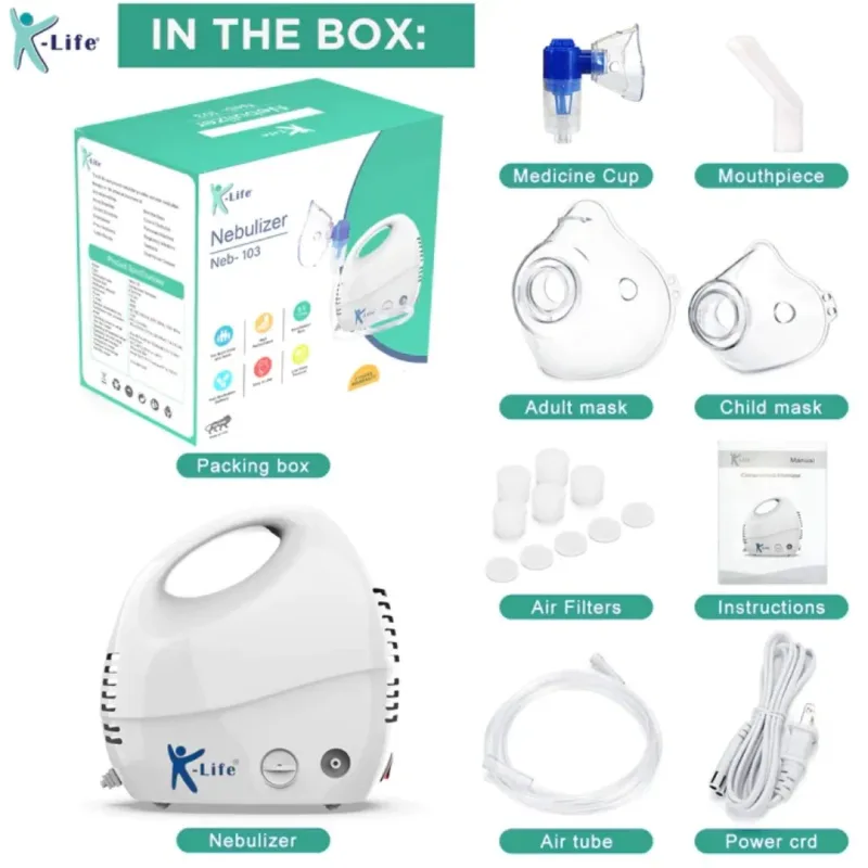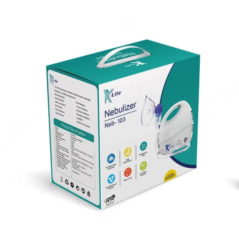K-Life Nebulizer Machine - Neb 103 is a medical device used to to treat breathing problems like wheezing and to loosen lung secretions by delivering medication in the form of a mist that is inhaled into the lungs.