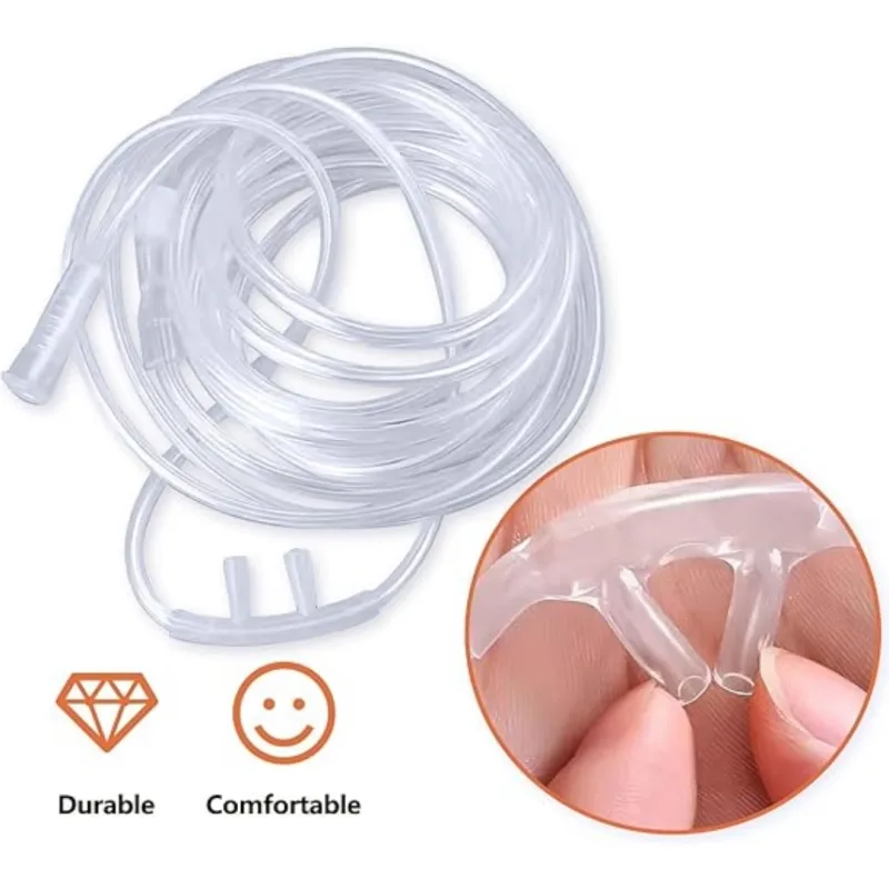This tube is compatible with most oxygen delivery devices and comes without a nasal cannula, allowing users to attach their preferred interface as needed. It is made from soft, kink-resistant material that ensures smooth and uninterrupted oxygen flow throughout use. The tube is transparent for easy monitoring and comes individually packed to maintain hygiene.