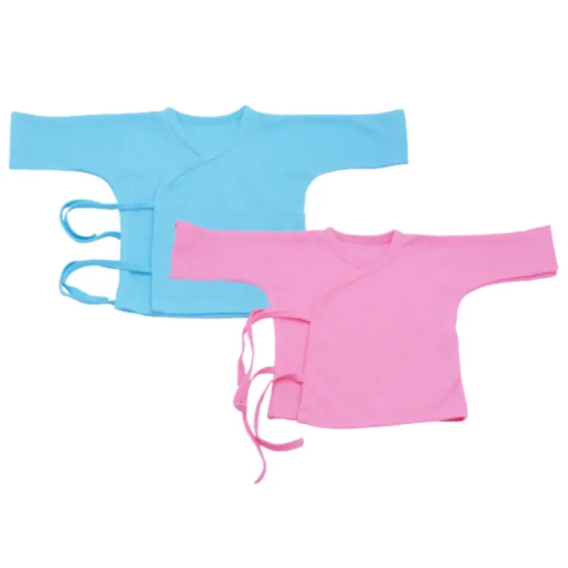 This jhabla features a double-layered front with lace detailing, providing both protection and a charming look. Its soothing, light baby-friendly colors add a calm and comforting touch to your newborn's daily wear.