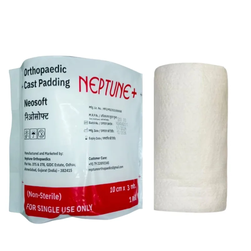 Neptune Neosoft Orthopaedic Cast Padding is a skin-friendly undercast material used to provide excellent cushioning and protection beneath orthopedic casts. It is made from soft, non-woven fabric, conforms easily to the body’s contours, ensuring patient comfort throughout the healing process.