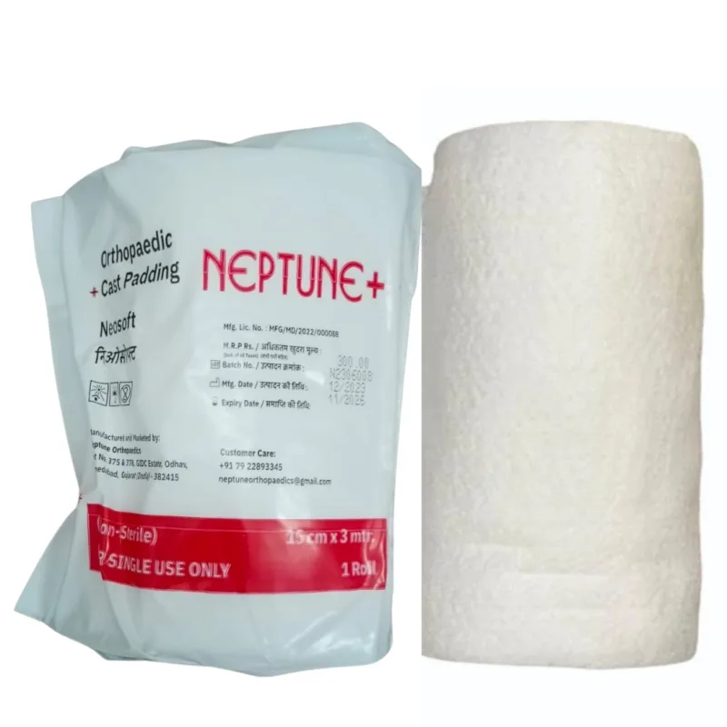 Neptune Neosoft Orthopaedic Cast Padding is a skin-friendly undercast material used to provide excellent cushioning and protection beneath orthopedic casts. It is made from soft, non-woven fabric, conforms easily to the body’s contours, ensuring patient comfort throughout the healing process.