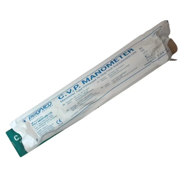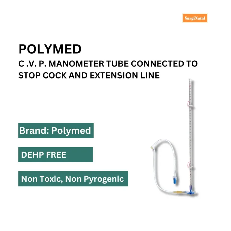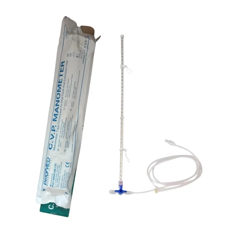 Polymed C.V.P. Manometer is a medical device used to measure and monitor central venous pressure (CVP) in patients requiring continuous or intermittent assessment. It provides accurate pressure readings, assisting healthcare professionals in evaluating circulatory function and fluid balance.