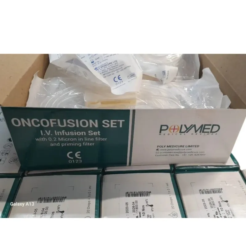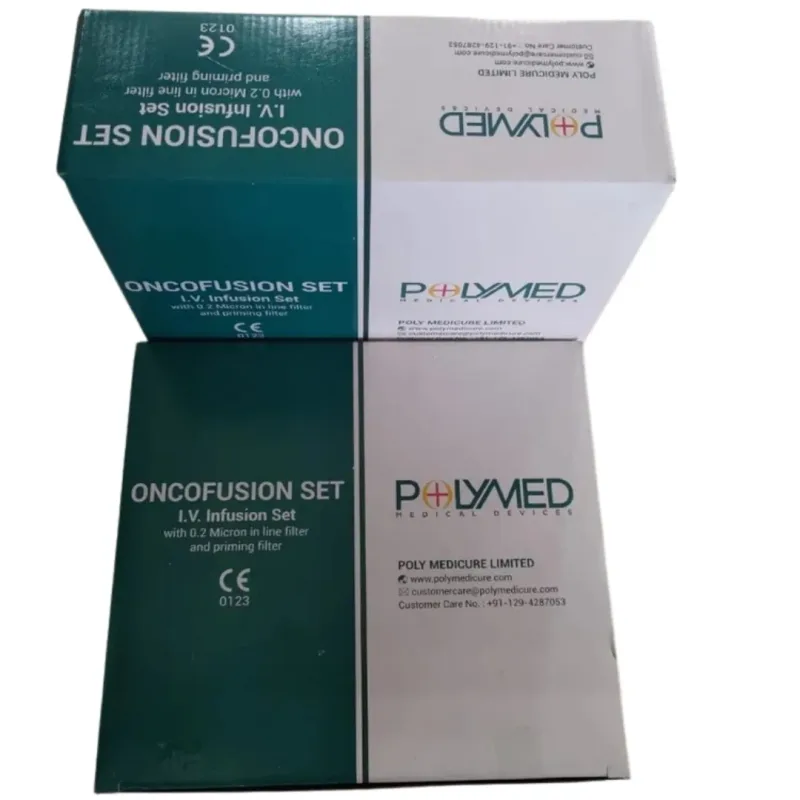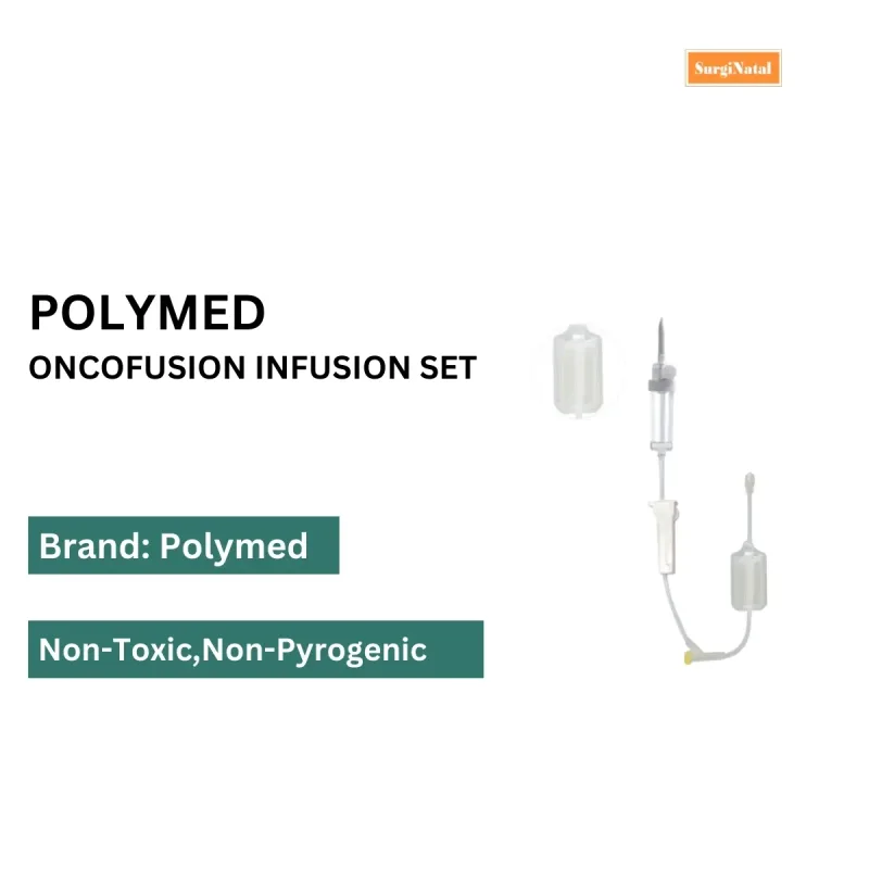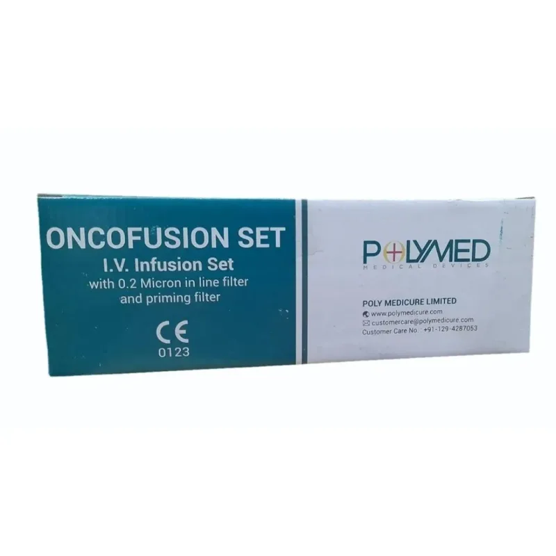 Polymed Oncofusion I.V. Infusion Set is a medical device used for safe and precise administration of intravenous fluids, particularly in oncology treatments.