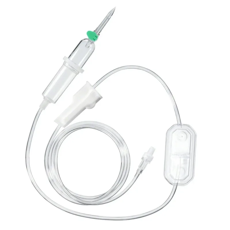 It features a 0.2-micron in-line filter, which effectively prevents particles, air, bacteria, and fungi from entering the venous system, ensuring contamination-free infusion.