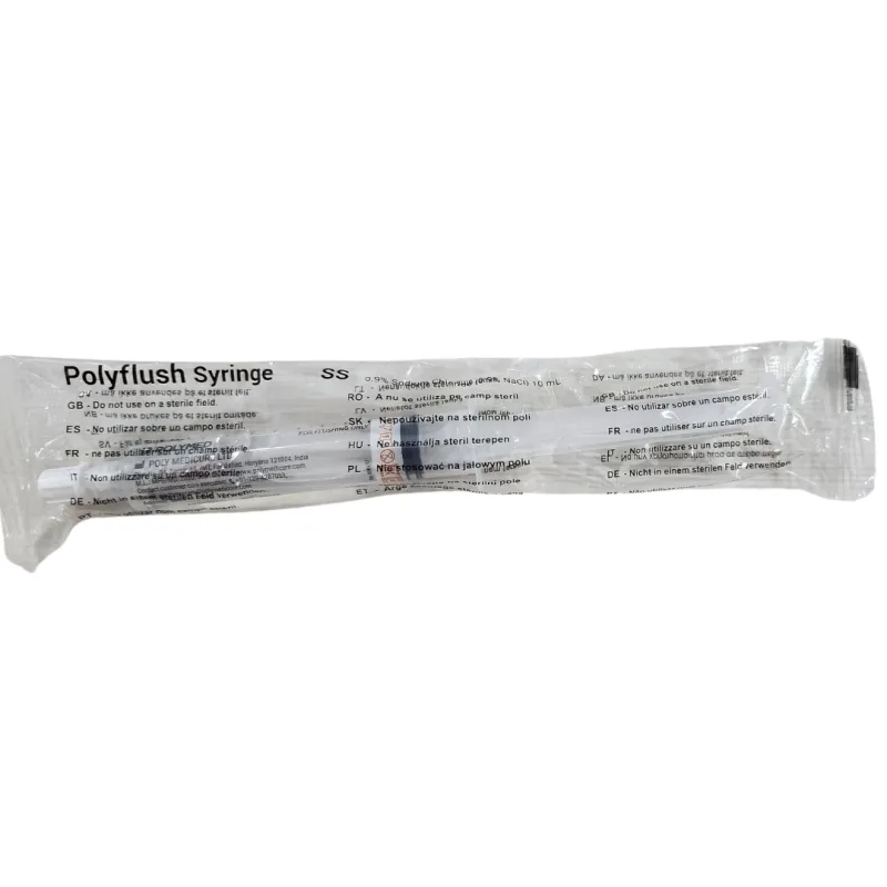 Polymed PolyFlush Prefilled Syringe is a medical device used to meet all line flushing needs with ease and safety. It is intended only for flushing indwelling vascular access devices and comes prefilled with sterile normal saline (NaCl), eliminating the need for manual preparation.