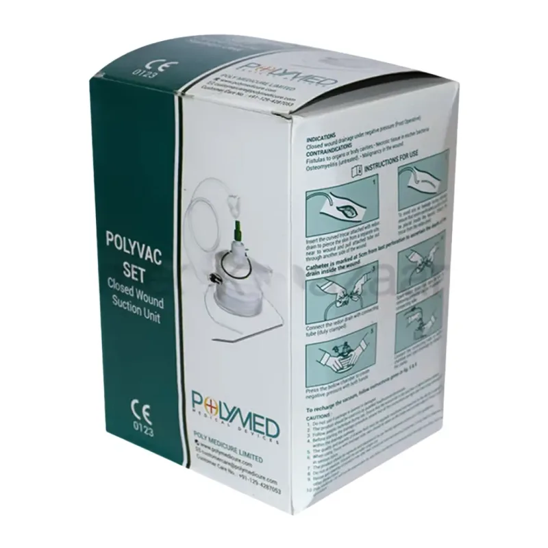 Related Searches: Polyvac Set use, Closed wound suction unit use, Wound suction drainage system, closed wound suction set, polyvac set, poly vac set, Closed wound suction Set, Polymed wound suction Set.