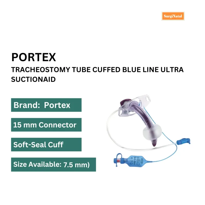 Portex Blue Line Ultra Suctionaid Tracheostomy Tube is a medical device used to preserve an unobstructed airway and avoid aspiration in patients who are ventilated. It is designed to give maximum patient comfort and ease having an additional lumen or port that allows for suctioning of secretions.