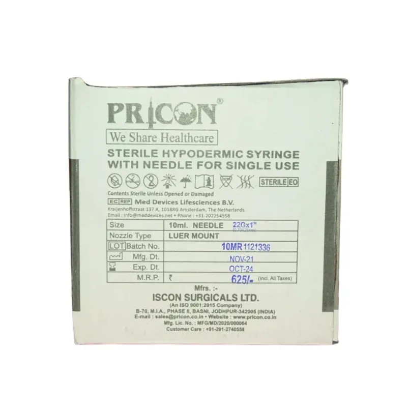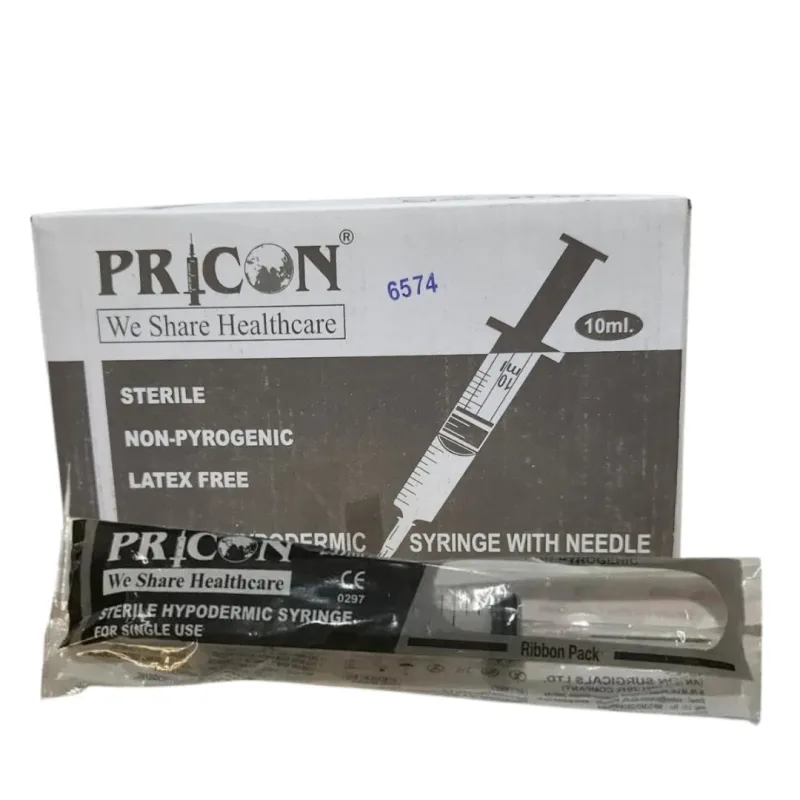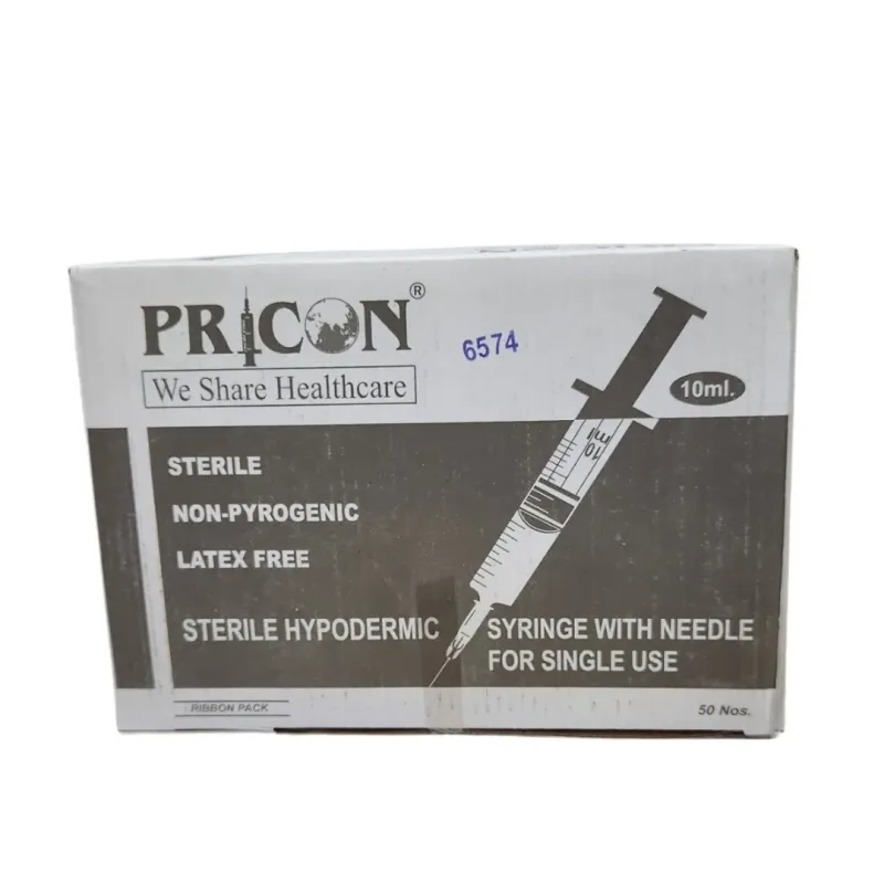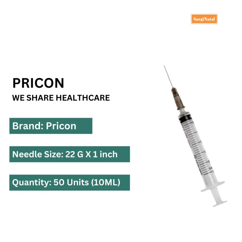 Pricon Sterile Hypodermic Syringe with Needle Single Use 10 ml is a medical device used to deliver fluid medicine into the patient's body. It is made of medical grade hypodermic material which means not made with latex, BPA, DEHP or PVC.