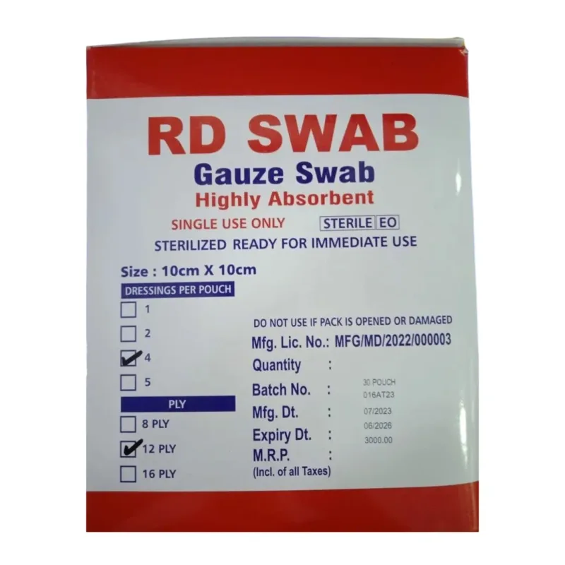 RD Swab Gauze Swabs is a fine wire mesh cotton pad or piece mainly used in the medical field for cleaning and protecting minor wounds. They are made of 100% cotton material, which ensures their softness and gentleness to the skin. These swabs come in different sizes and lengths.