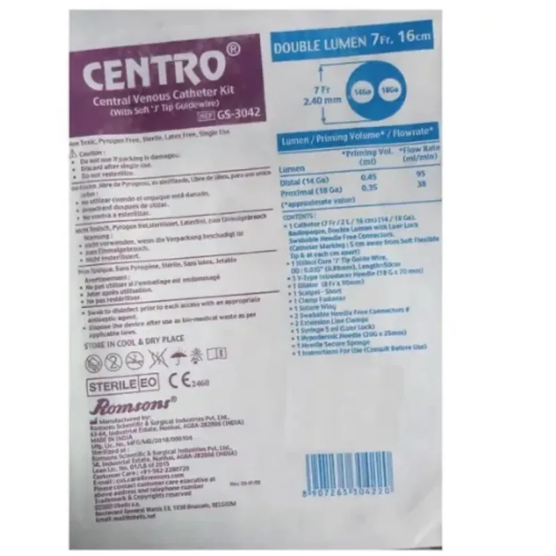 Related Searches: romsons central venous catheter, romsons cvp manometer, romsons catheter, romsons trocar catheter, romsons cannula, centro double lumen, romsons external catheter, romsons urine catheter, romsons product list, central venous catheter price in india, centro triple lumen, central line kit price, romsons careers, triple lumen central line price, centro triple lumen, central line kit price, romsons careers, triple lumen central line price, lumen catheter uses, triple lumen catheter.