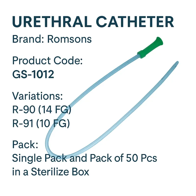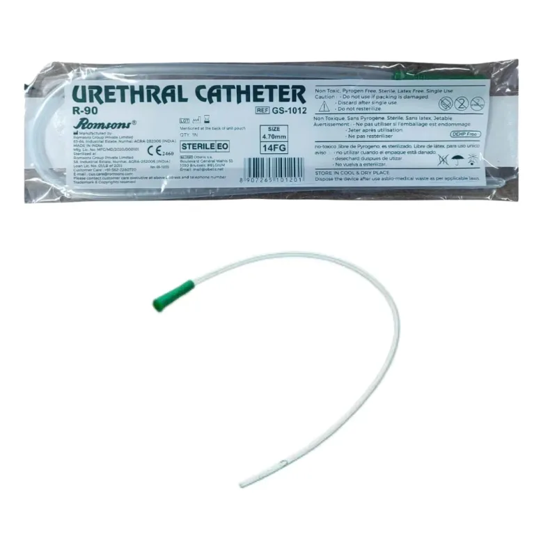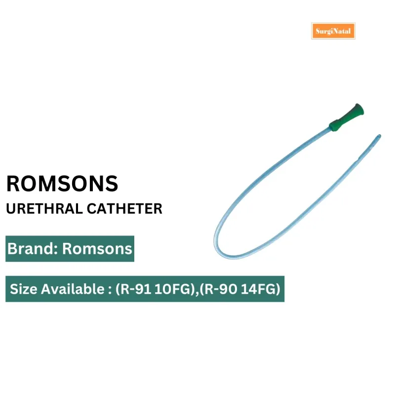 Romsons Urethral Catheter R-90/R-91 is also known as an indwelling catheter or foley catheter is a medical device used to collect urine from the bladder inserted through the urethra.