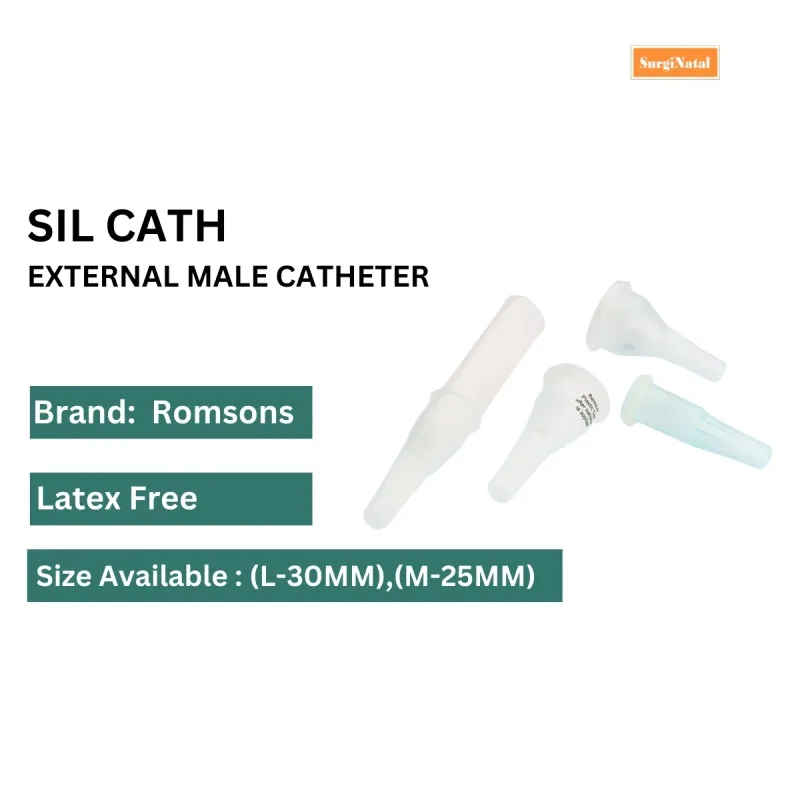 Romsons Silicon External Male Catheter Silcath is a soft silicon catheter. It is designed to collect urine made up of biocompatible material that minimizes irritation while providing a gentle and non-reactive feel.