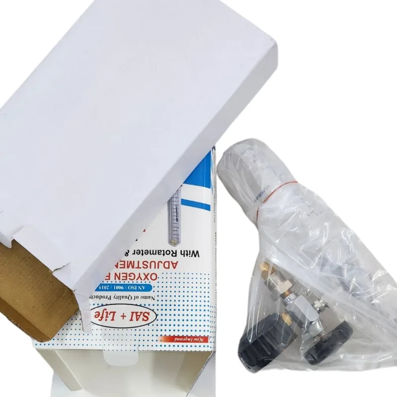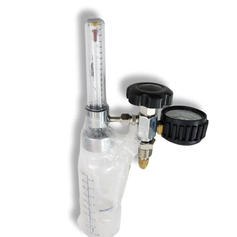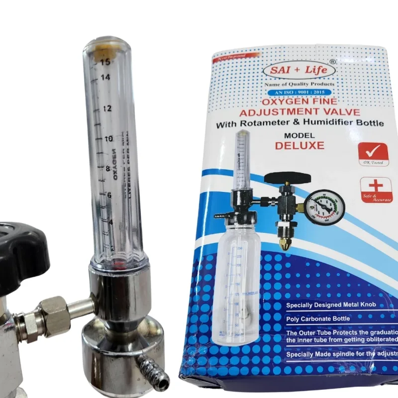 Oxygen Flow Meter with Humidifier Bottle is used to control and monitor the flow of oxygen from a cylinder to the patient safely and efficiently. It helps deliver oxygen at the required flow rate while ensuring that the oxygen is moist and comfortable to breathe.