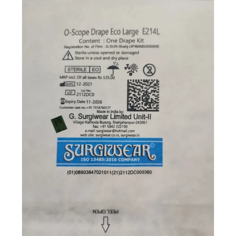 Surgiwear O-Scope Drape - Eco, Medium (E214M) is a disposable drape used to maintain a sterile environment during medical and surgical procedures. It is made from medical-grade materials, ensures effective barrier protection against fluids and contaminants, helping reduce the risk of infections.