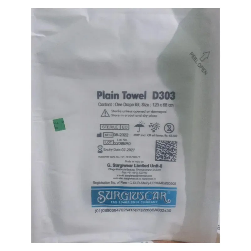 Surgiwear Surgical Plain Towel D303 is specially designed for use in medical and surgical settings. It is made from soft and absorbent material, it helps maintain cleanliness and hygiene during procedures.
