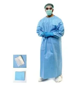 G-Kit Premium consists of: Medium Size Gown(1 no), Disposable Bag(1 no), Plain Sheet Large(2 no), Waterproof Legging(1 Pair), Cap(1 no), Mask(1 no), Paper Hand Towel, Nitrile Gloves (1 Pair), Goggle(1 no). Wrap around gown made of 50gsm SMS water resistant to 20cm of plain water, stitched, 3 ply mask, cap made of 15gsm spun bond, shoe cover leggings made of 50 micron poly ethylene height up to below knee, Nitrile gloves one pair, polycarbonate goggles, plain sheets large 120×120 cm 2 nos. Disposable pouch one.