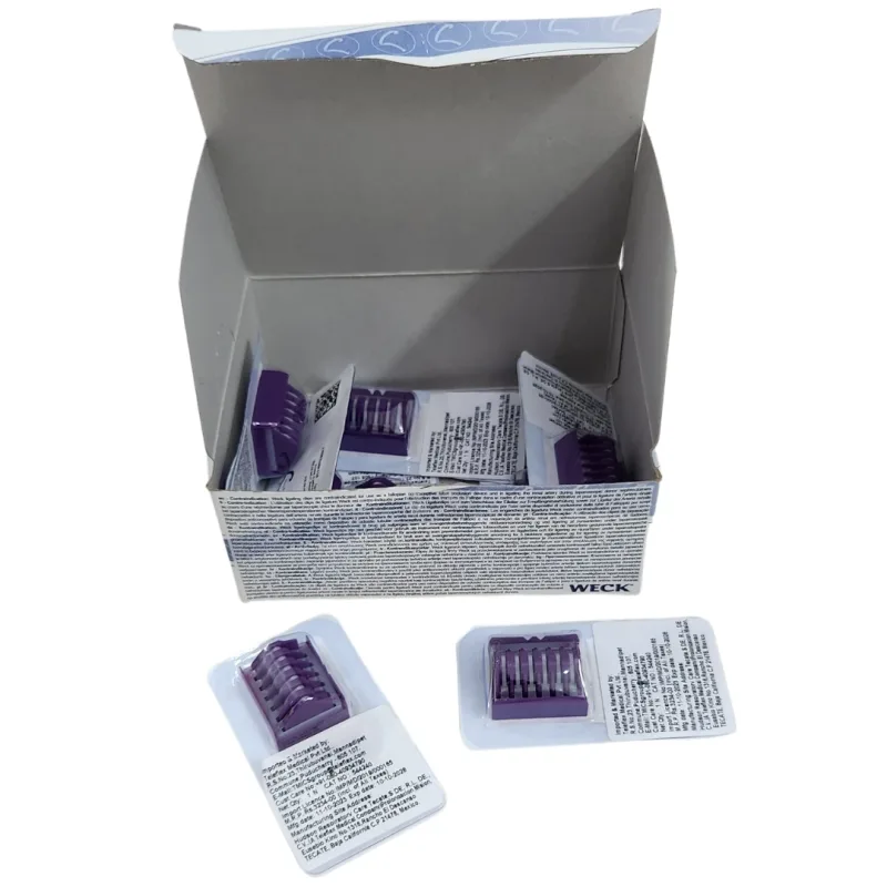 Weck Hem-o-lok Polymer Ligation System is a medical device used for secure and efficient vessel ligation, ensuring reliable performance in various surgical procedures. These non-absorbable polymer locking clips firmly lock onto the vessel, providing a cool, safe, and secure ligation without causing thermal damage. The clips are available in multiple sizes, catering to different surgical needs.