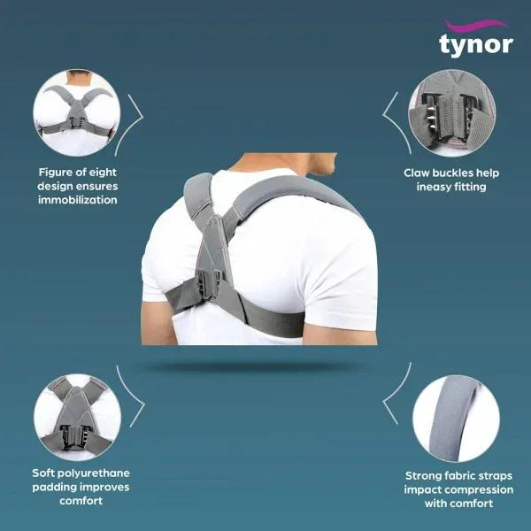 The adjustable hook and loop closures with fastening tape allow for a customized fit, offering support and stability to the clavicle area. Ideal for non-surgical cases, it allows necessary movement while ensuring effective immobilization.