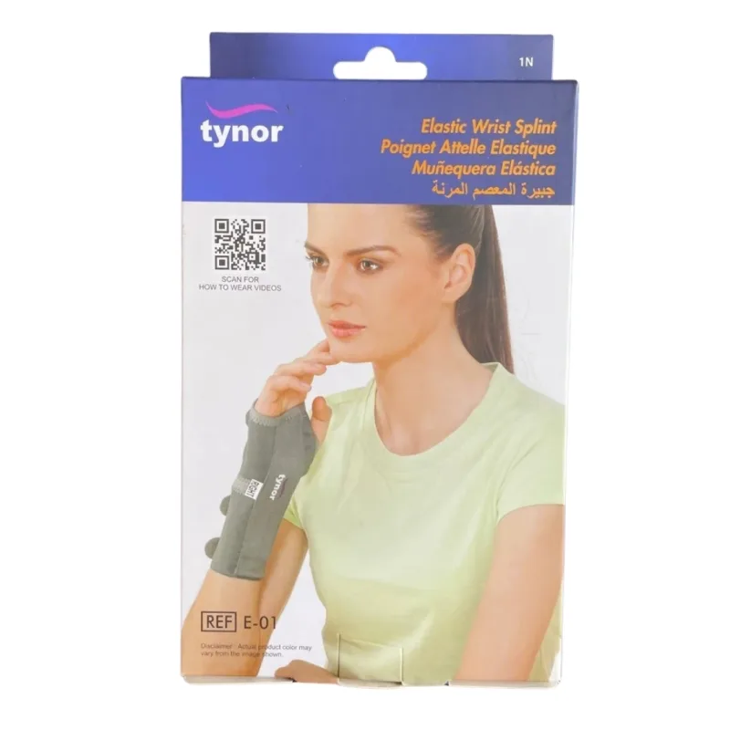 Tynor Elastic Wrist Splint is an orthopedic support used to immobilize and provide firm support to the hand and wrist. It maintains the wrist in a dorsiflexion/functional position while allowing unrestricted movement of the fingers and thumb ideal for managing various orthopedic conditions.