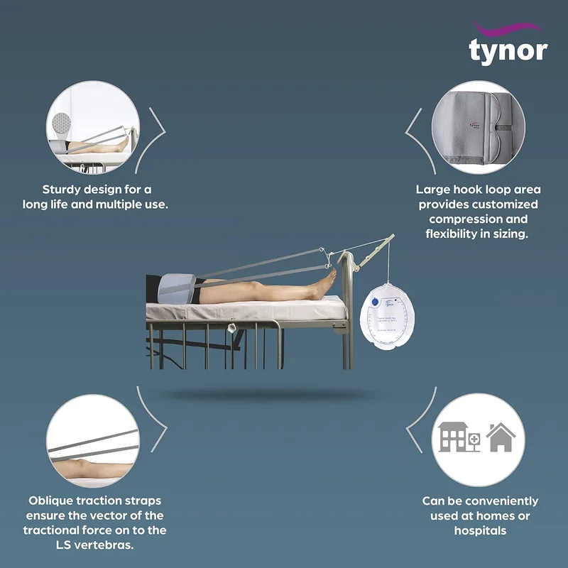 Tynor Pelvic Traction Belt is used to provide firm support and effective traction to the pelvic region during pelvic traction therapy. It is commonly used in the management of lower back pain, lumbar disc problems, sciatica, and other spinal conditions where controlled pelvic traction is recommended.