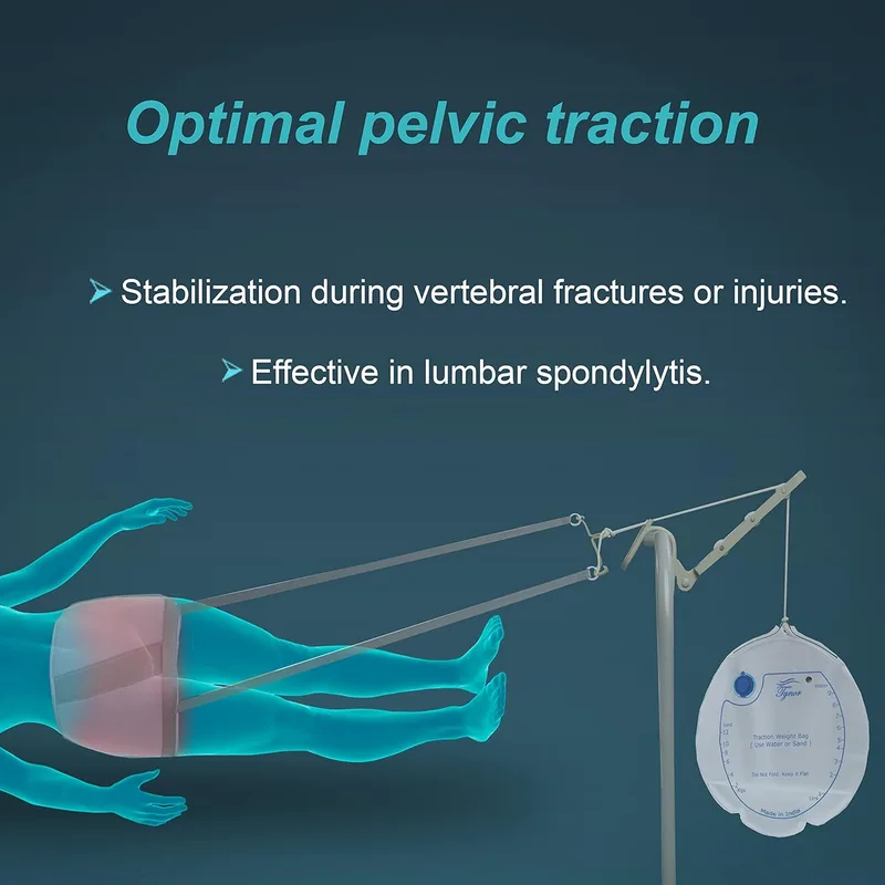 Its ergonomic design allows proper positioning and secure fitting, minimizing slippage during traction. The adjustable straps help achieve a customized fit for different body sizes. This pelvic traction belt is suitable for use with standard pelvic traction kits and weight systems, making it ideal for hospital, clinic, or home physiotherapy settings under medical supervision.
