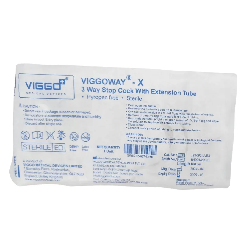 Viggo 3 Way Stopcock with Extension Line Tube is a medical device used to enhance safety, comfort, and functionality during intravenous therapy. It features a low-pressure extension line that helps minimize movement at the cannulation site, reducing mechanical irritation and lowering the risk of infection.