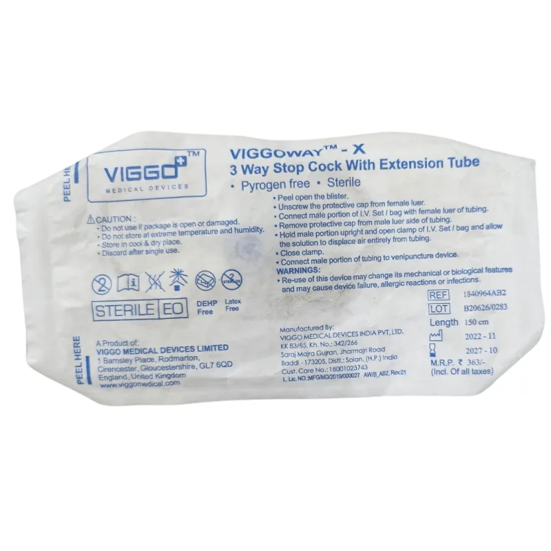 Viggo 3 Way Stopcock with Extension Line Tube is a medical device used to enhance safety, comfort, and functionality during intravenous therapy. It features a low-pressure extension line that helps minimize movement at the cannulation site, reducing mechanical irritation and lowering the risk of infection.
